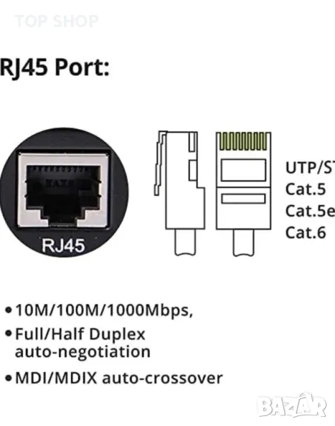 Тип кабел: UTP/STP Cat.5e за 100м.