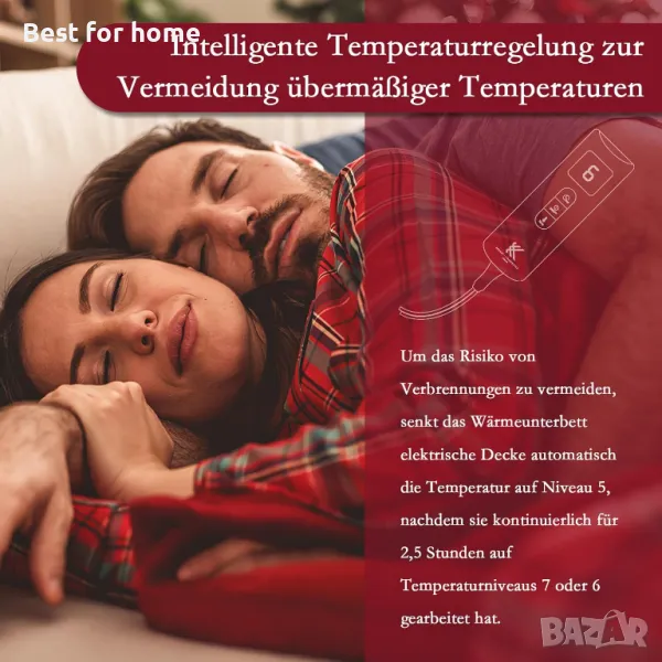 Автоматично регулиране на температурата: За да се избегне рискът от изгаряне, нагреваемото електрическо одеяло под леглото автоматично понижава температурата до ниво 5, след като е работило непрекъснато в продължение на 2,5 часа при температурни нива 7 или 6.