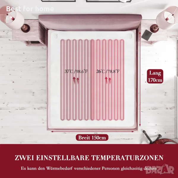 Две отделно регулируеми температурни зони: термоподложката има две независими температурни зони и два независими контролера. Термоподложката може да се настройва на различни температури и таймери едновременно, което е много подходящо за двойни легла. В същото време отговаряте на различните нужди на вас и вашето семейство според температурата.