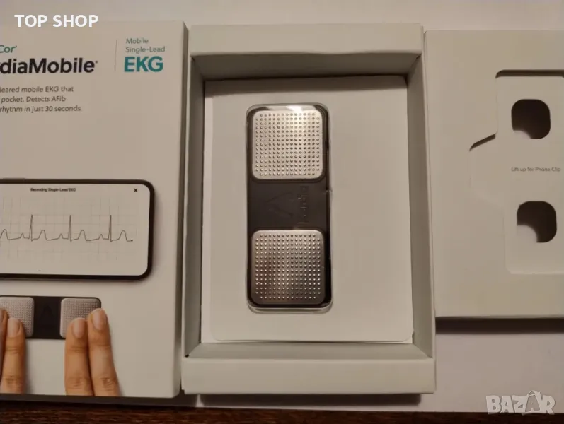 ЕКГ монитор с 1 отвеждане – Запис у дома – Открива AFib и нередовни аритмии – Лесни резултати за 30 секунди – Работи с повечето смартфони – Отговаря на FSA/HSA