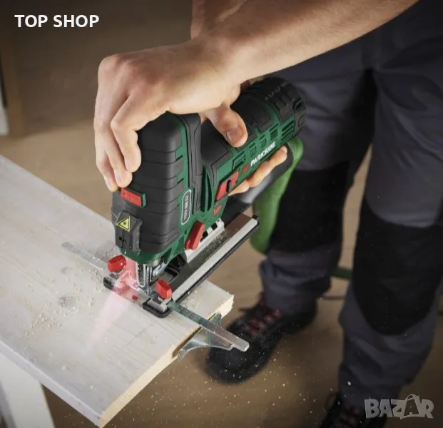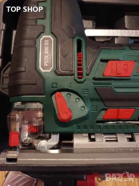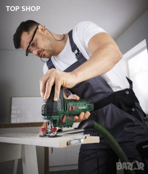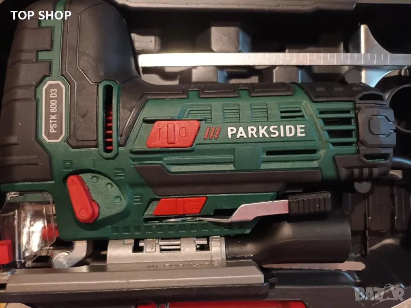 PARKSIDE® Махален прободен трион PSTK 800 D3, 800 WСкорост на празен ход: 0-3100 rpmЪгъл на рязане ляво/дясно: 0°/22,5°/45(315)Повече информация✓ Бързо освобождаващ патронник SAW LOCK за лесна смяна на острието✓ Функция за издухване за линия на рязане без стружки✓ Ергономична дръжка с нехлъзгащо покритие ОписаниеPARKSIDE® Махален прободен трион PSTK 800 D3, 800 WХарактеристикаБързо движение на триона благодарение на хода на махалото, регулируем на 3 ниваФино регулиране на рязане без ход на махалоЛазерно насочване и LED работна светлинаЕргономична дръжка с нехлъзгащо покритиеБроят на ударите се регулира електронноРегулируема без инструменти гладеща плоча с регулируеми ъгли на рязане от двете страниЕргономична дръжка с нехлъзгащо гумено покритиеФункция за издухване за линия за рязане без стружкиВръзка за външно изсмукване на прах - смукателна тръба с включен редукторБързо освобождаващ патронник SAW LOCK за лесна смяна на режещия дискПрозрачен предпазител за остриетоЗащита срещу чиповеЗа триони с единична опашка на кукатаВключен калъф за носенеВключени аксесоари: 1x нож за дърво, 1x ножовка, 1x паралелен водач, 1x адаптер за външно прахоулавяне с редуктор (предварително сглобен)