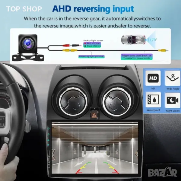 Управление от волана и камера за задно виждане: Поддържа функцията за управление от волана, можете да промените песен, канал и сила на звука, без да пускате волана. Поддържа достъп до задната камера, поддържа и двата формата AHD/CVBS, по-ясно паркиране през нощта. Автоматично превключване на камерата за задно виждане на задна предавка, поддържа настройката на камерата за задно виждане.