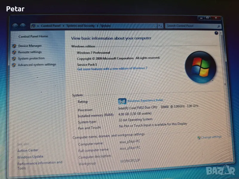 Продавам компютър - Asus P5KPL - Intel Core 2 Duo E8400 → Обява 48927354