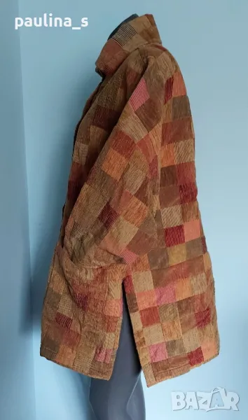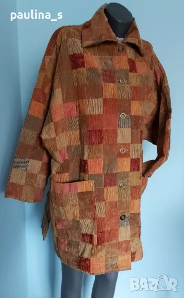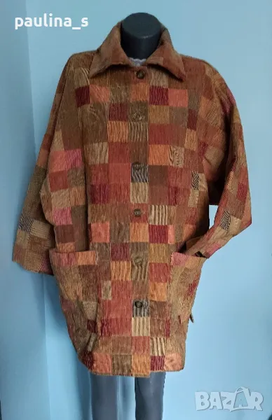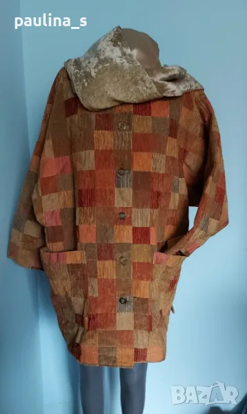 1️⃣. Много атрактивно преходно палто в каре, като ново, без дефекти и етикет, една бройка. Цената е крайна 29,99лв / 15 евро евро. Моделът е обран, с външни джобове, щедра яка, падащи рамене. На живо е много красива и ефектна дреха. Шалът е ръчна изработка от сатен и плюш с ресни, размери 180см / 17см - цена 9,99лв / 5 евро. Предпочитам артикулите да не се делят! Общата цена е сумарна.
