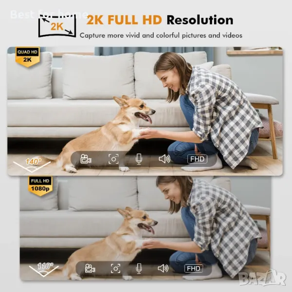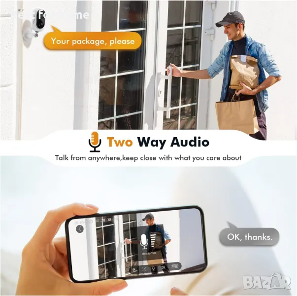 Двупосочно аудио и Micro SD карта/облачно съхранение: С възможност за двупосочно аудио можете да говорите с хора във вашия имот от всяко място чрез приложението, лесно да взаимодействате със семейства, като например шофьори или дори натрапници чрез приложението на телефона. Безжичната