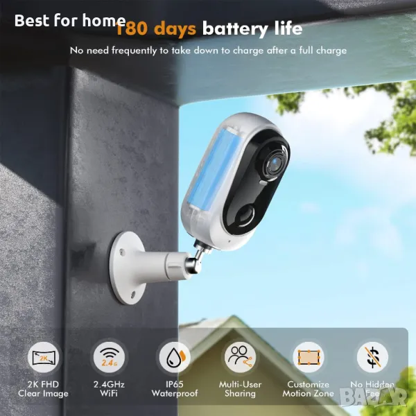 Откриване на движение и човешки PIR Безжичната външна охранителна камера е конфигурирана с интелигентни PIR сензори, които анализират хуманоидно откриване и откриване на движение. Можете да зададете чувствителността на откриване, за да намалите ефективно фалшивите аларми. След като човешката форма и движение бъдат открити, безжичната камера ще заснеме видео на целия процес (изисква SD карта за поставяне, не е включена). Можете да проверите записаното от камерата видео след това, дори и камерата да не записва постоянно, не пропускате нищо.