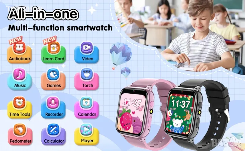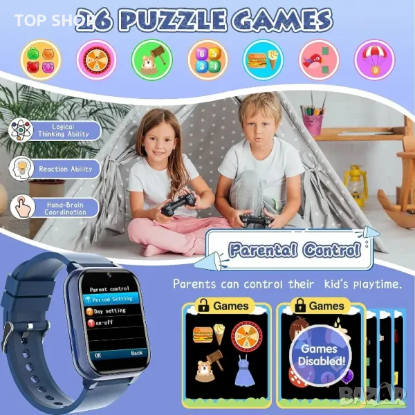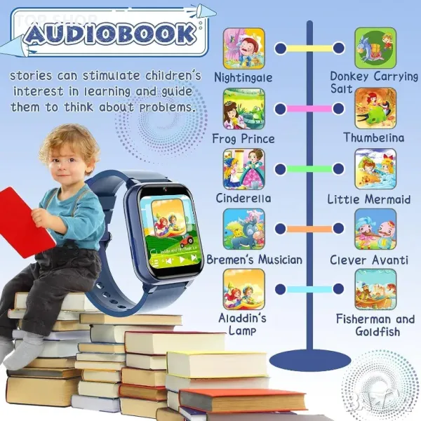 Относно този артикул ⌚【Многофункционални електронни играчки за обучение】Този детски смарт часовник включва забавление и обучение в едно. Като например: 10 аудиокниги, 26 игри, карта за обучение, 13 аларми, родителски контрол, калкулатор, крачкомер, видео, MP3 плейър, фенерче, рекордер, HD камера, 12/24H формат, сила на звука на мелодия, тематичен тапет, регулируем на 6 езика, и т.н. Богатите функции карат децата да се интересуват от този детски часовник и ги държат далеч от смарт телефона. ?【Учебна аудиокнига и карта за учене】Книгите с приказки могат да увеличат знанията на децата и да култивират интереса им към ученето, както и да обогатят въображението им и да упражнят способността им да изразяват себе си. Освен това в този часовник има много видове тематични учебни карти. Английските думи съответстват на снимките на реалните обекти, което може по-добре да помогне на вашето дете да запомни думите. ?【26 Puzzle Games Kid Learning Watch】Има 26 интересни образователни игри в детския смарт часовник, които могат ефективно да упражняват логическото мислене на децата, способността за реакция и координацията око-ръка. В допълнение, родителите могат също да контролират времето, което децата им прекарват в игри всеки ден чрез „Родителски контрол“ във функцията „Настройки“, за да предотвратят пристрастяването на децата си. ⏰【Напомняне за навици и времеви инструменти】Този смарт часовник за деца, момчета, момичета има 13 режима на аларма, като ставане, миене на зъби, закуска, разходка, ходене на училище, спорт, обяд, прибиране вкъщи, вечеря, домашна работа, домакинска работа, четене , лягане и т.н. В допълнение, този детски интелигентен часовник има таймер, хронометър, календар и други инструменти за време, всички от които могат да бъдат много добри за развиване на концепцията за времето на детето и развиване на добри жизнени навици. ?【Страхотен подарък за деца】Всички функции са вътре в часовника, няма нужда да изтегляте ПРИЛОЖЕНИЕ и да инсталирате SIM карта, много лесен за работа за деца. Разнообразието от функции може да отговори на ежедневните нужди на децата и да внесе забавление в живота на децата, което го прави идеален подарък за момчета и момичета на възраст 4-16 години за рождени дни или празници.
