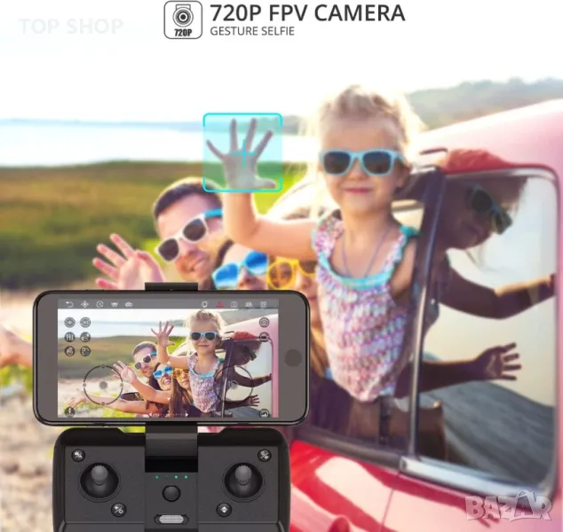 Мини дронът е оборудван със 720P HD FPV камера, включително регулируем ъгъл, която заснема висококачествено видео и ясни снимки също чрез специфични жестове. WiFi предаването в реално време може да разшири вашия поглед. Фотографията е лесна като пай.