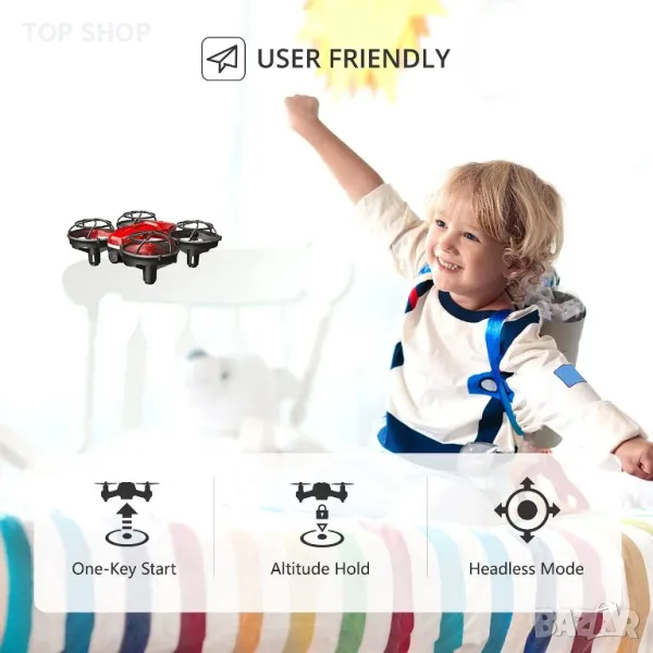 Лесна работа: С помощта на стартиране с един бутон и задържане на височината, дронът ще излети и ще кръжи на определена височина. В безглавия режим можете лесно да управлявате дрона без загуба на посока. Аварийното спиране може да предотврати повечето спешни ситуации. Полетът никога не е бил толкова лесен.