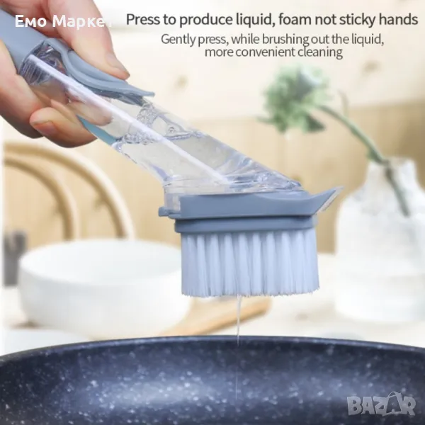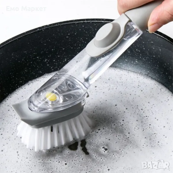 Четка за миене на съдове с вграден резервоар за препарат.