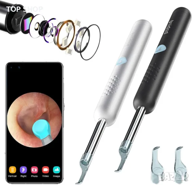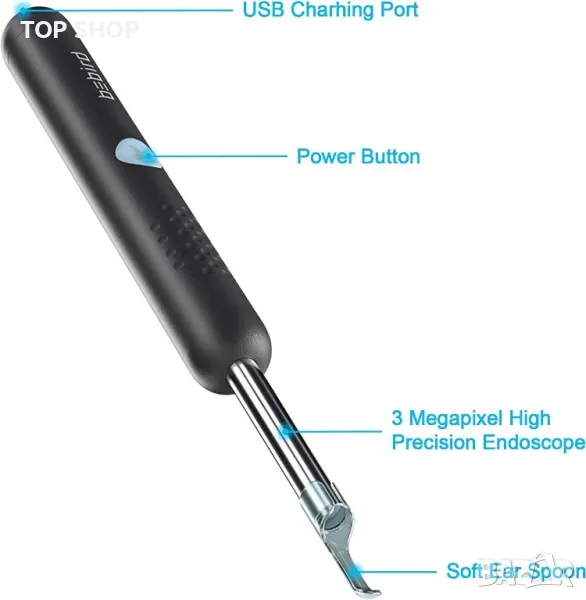 【Дисплей с 3 мегапиксела и 1080P】 - С 3-мегапикселовата камера можете ясно да проверявате ухото си на мобилното си устройство, а форматът на дисплея е 1080P HD. Освен това има 360° широкоъгълна професионална леща, която ви помага да премахнете по-лесно ушната кал.