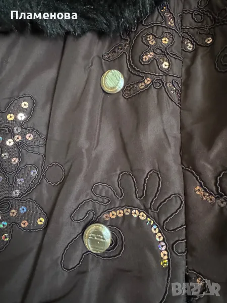 Палтото е носено, но е много запазено, в отлично състояние, с бродерия и паети.
