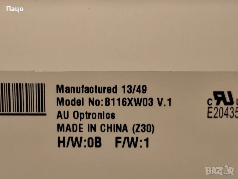 11,6" LCD екран B116XW03 V.1 / Съвместимост: