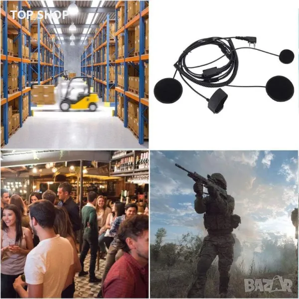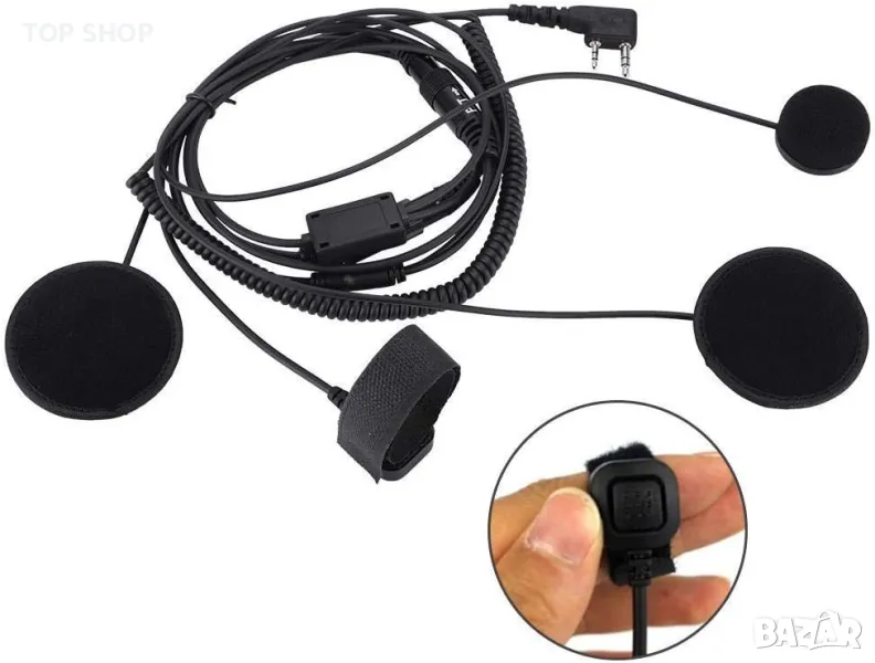 Това е най-мощният инструмент за комуникация за мотоциклети, моторни шейни и всеки друг спортист, носещ каска. РТТ с щипка, можете да го закачите на яката си, което е много удобно. И с голям бутон РТТ. Двойните високоговорители подобряват звука и осигуряват по-чист звук. Предлага се с допълнителен РТТ кабел за пръсти и е оборудван с лента, монтирана на кормилото. Вътре в каската ще бъдат монтирани два високоговорителя и един микрофон. Идеален за полиция, армия, клубове, барове, стрелба, охрана, ресторанти, хотели, бодигардове, складове и шумни среди.