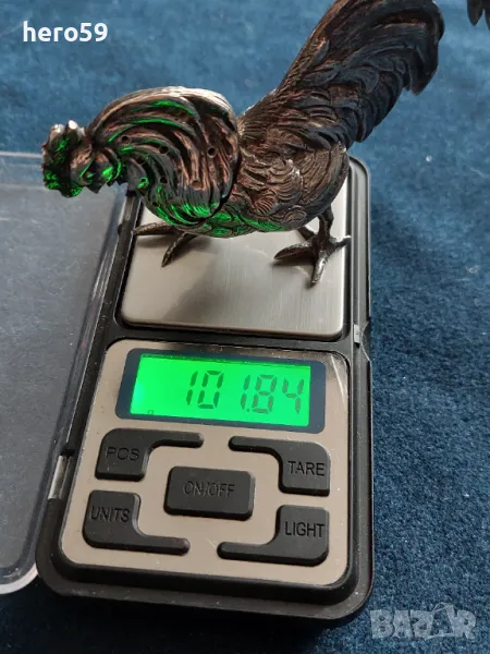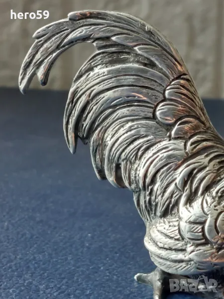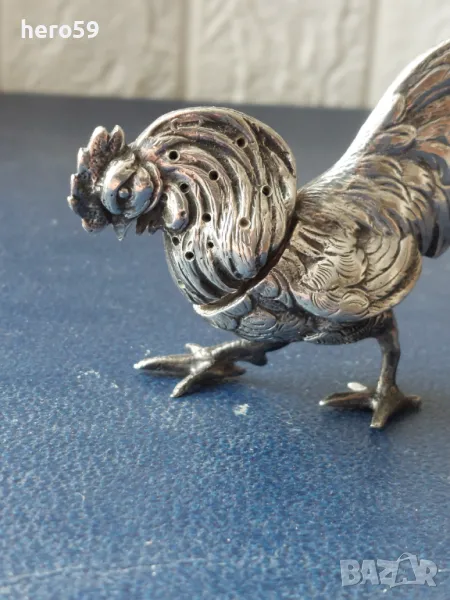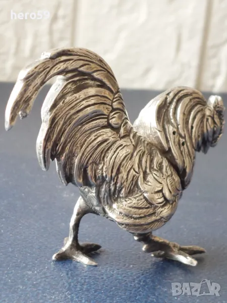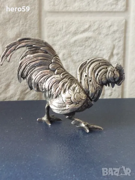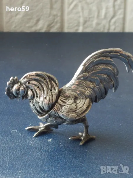 За продажба сребърно петле,изработено от сребро проба 800,подходящо за интериор.На времето се е използвало като солница. 102 грама.