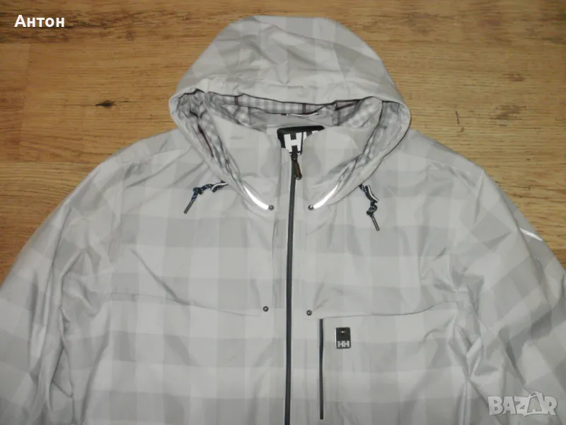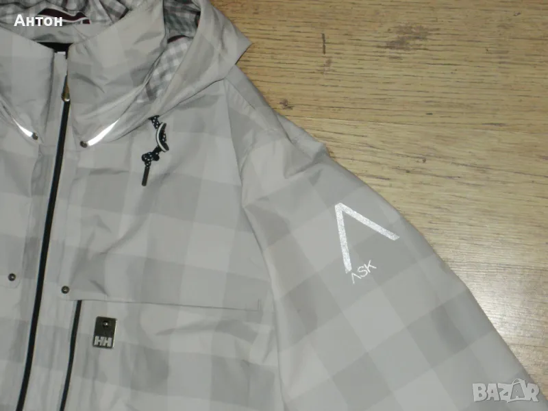 Якето е лимитирана серия на HELLY HANSEN ASK>EMBLA, tech protection, ново, оригинално с черен етикет. Модерно за сезона каре. Цветовете са като на снимките, сивата гама. По номер е 2XL, водо и ветроустойчиво. Използван е трислоен водоустойчив и дишащ външен материал. Закопчава се с висококачествен YKK® двоен цип, който е изключително издръжлив и гарантира надеждност. Качулката се прибира в яката. Отпред има четири джоба, има и един вътрешен. Шевовете са шити и лепени. Има лого отпред, на ръкава и на всички ципове.
