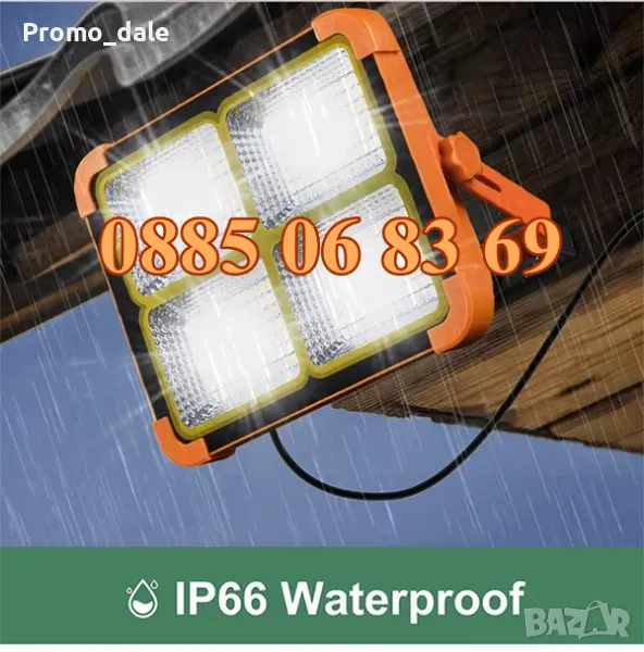 Соларна къмпинг лампа 100W, соларен прожектор с 4 режима на работа 210х170 мм