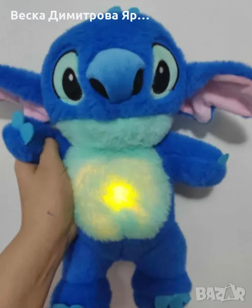 Тази сладка плюшена играчка с дизайн на Stitch е идеалният спътник за вашето бебе. С нейното успокояващо ритмично дишане, тя имитира естествените дихателни движения, което създава чувство на спокойствие и сигурност, като помага на детето да се отпусне и заспи лесно. Играчката също така разполага с нежна приспивна музика и мека светлина, които допълнително допринасят за успокояващата атмосфера. Височина: 30 см, изключително мека и безопасна за малките ръчички. Тя е перфектният начин да създадете уют и мир за вашето бебе.