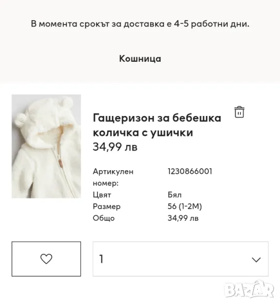 Пухен гащеризон с ушички H&M размер 56см. → Обява 48928745