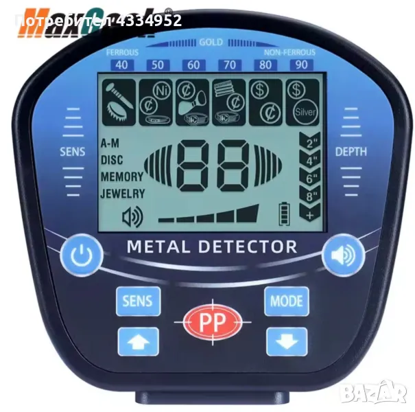 Дискриминация на металите,настройка на чувствителността,показва какъв е обекта и на каква дълбочина е има пинпоинтър,