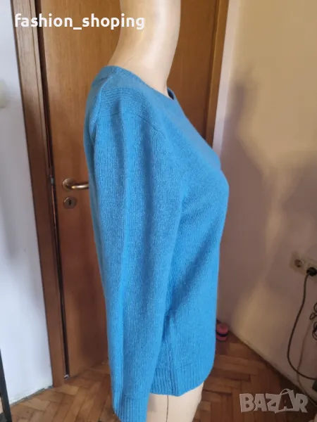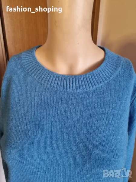 Топъл, комфортен пуловер в прекрасен, наситен син цвят. Най- силните страни на плетивото са атрактивния му цвят и материята му- естествена, чиста вълна, отличен изолатор на студа.