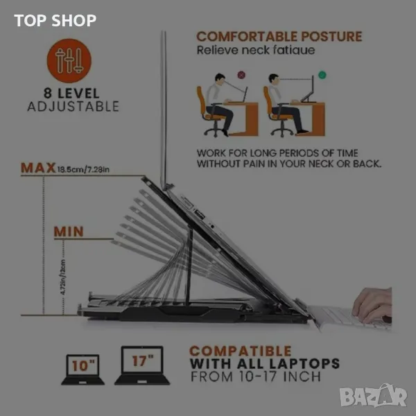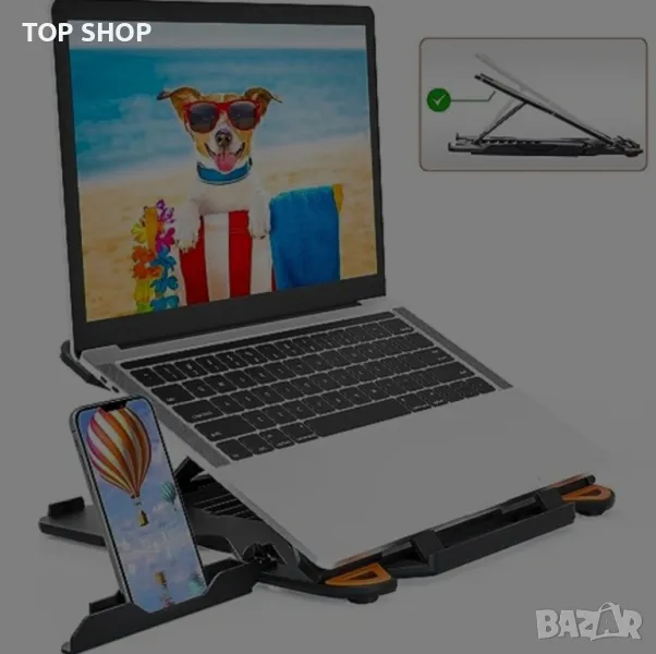 Стойка за лаптоп, въртяща се, 360 градуса, регулируема по височина 8 степени, 300x200x22 мм. → Обява 48930174