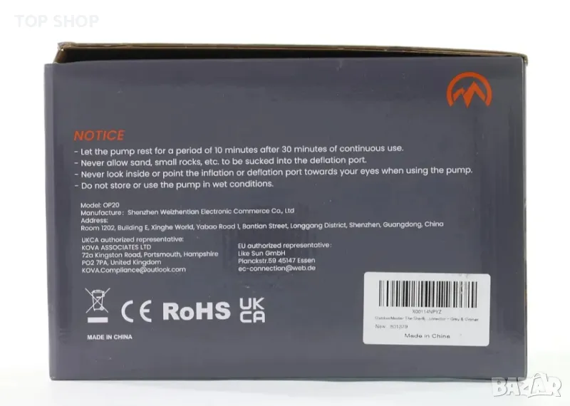 OutdoorMaster 20PSI SUP въздушна помпа с високо налягане Shark - интелигентно двустепенно надуване
