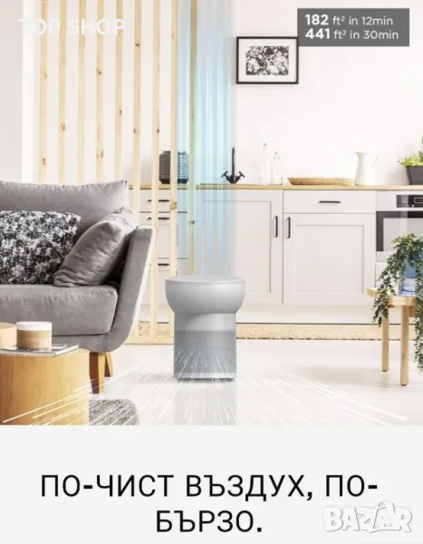 По-чист въздух за 12 минути за стаи до 182 кв. фута! (5 пъти на час)*†