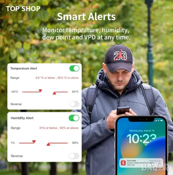 Използвайте гласови команди: С помощта на SwitchBot Hub Mini (включен), вече можете да използвате гласови команди, за да питате за температура и влажност, а също така можете да управлявате вашето устройство дистанционно. Просто попитайте Alexa - това е бързо и удобно! Безжичният вътрешен външен термометър също поддържа Google Home, Siri Shortcuts и SmartThings.