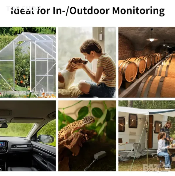 IP65 Прахоустойчив/Водоустойчив, подходящ за закрито и открито: Външният термометър е IP65 прахоустойчив и водоустойчив и може да работи безопасно дори в дъждовни дни. Просто добавете 3 сензора чрез Wi-Fi. Те са лесни за използване, леки и преносими. Перфектен за кухни, бани, оранжерии, хладилници, складове, хумидори, тавани, мазета, пространства за обхождане и др.