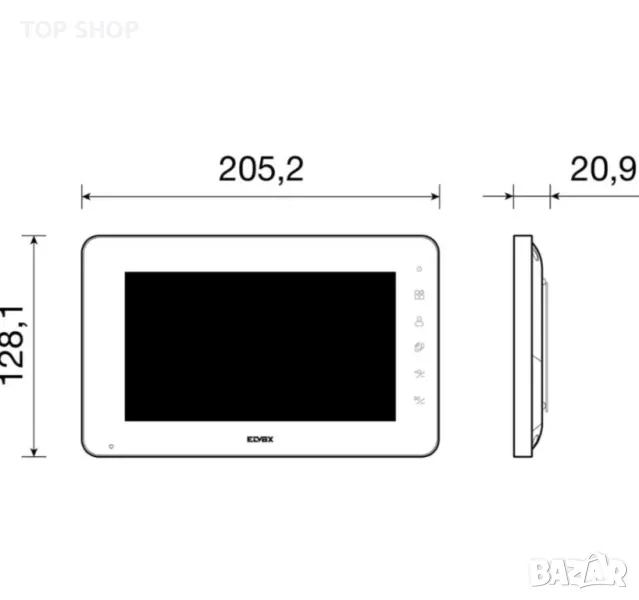 7" soft touch монитор с капацитивна клавиатура и захранване. Възможност за свързване към външна камера за видеонаблюдение