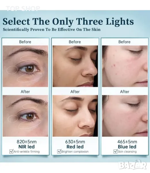Гъвкава LED маска за лице с 8-цветен спектър: използва силата на осем различни цвята, включително близки инфрачервени, червено, синьо, зелено, жълто, лилаво, синьо-зелено и бяло. Всеки цвят е пригоден да отговори на различни нужди на кожата, като подобрява грижата за кожата с предимства като намаляване на бръчките, подобрен колаген, изравняване на тена на кожата и балансирана хидратация за подобрен тен.