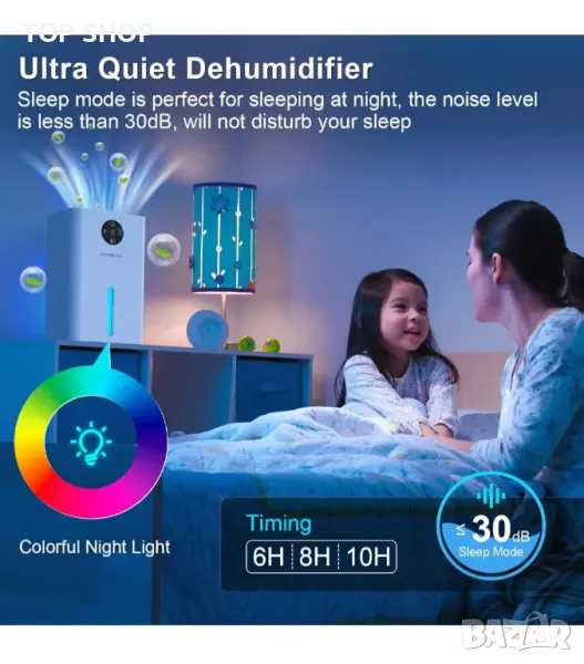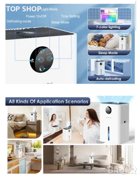 Влагоуловител AONELAS 1,8л. със 7 цвята светлина и автоматично размразяване, преносим и ултра тих