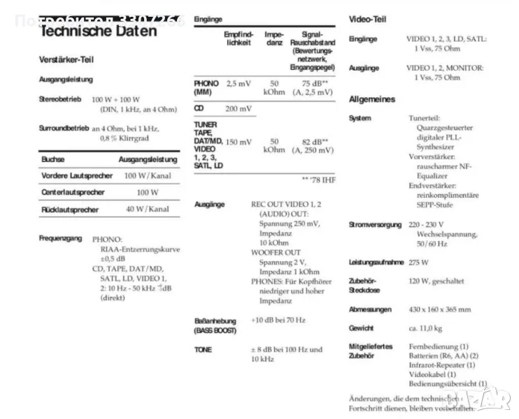 Продава се усилвател Sony Dolby surround Pro Logic с няколко канала за домашно кино и различни функции. 275w. Технически данни -последна снимка. Модел: TA-VE800G