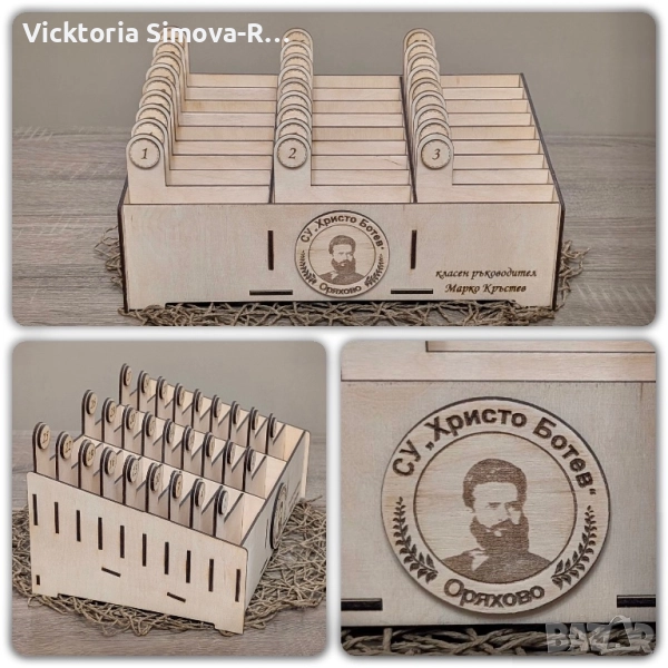 **поръчка за органайзер с изработка на логото на съответното училището вместо табелката с надпис отпред се заплаща допълнително, както и допълнителното гравиране отпред името на кабинети/кл. ръководител!