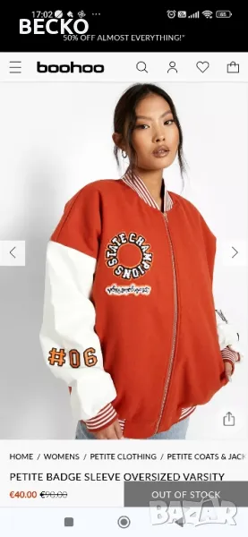 Дамско бомбър яке Boohoo ,чисто ново с етикет .Якето не е носено . Размер 36