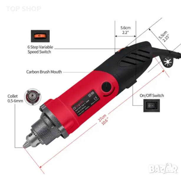★Мощна електрическа мелница: Мини електрическа мелница, 0,5-6 mm цанга - Номинална входна мощност: 240 W Напрежение: 220-240 V Скорост без товар: 8000--32000 RPM