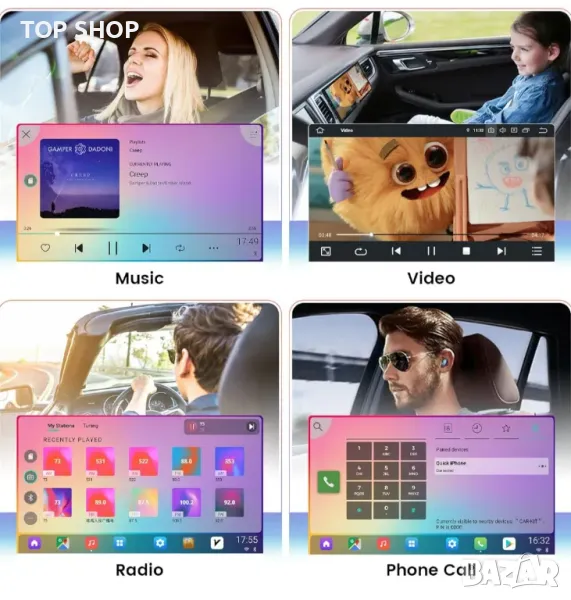 [ВАШАТА ЛЮБИМА ФУНКЦИЯ]: Поддържа повечето приложения за навигация. Wave / Sygic / Google Maps / Wi-Fi / Радио / BT Музика / Видео / Интернет / Игри и др.