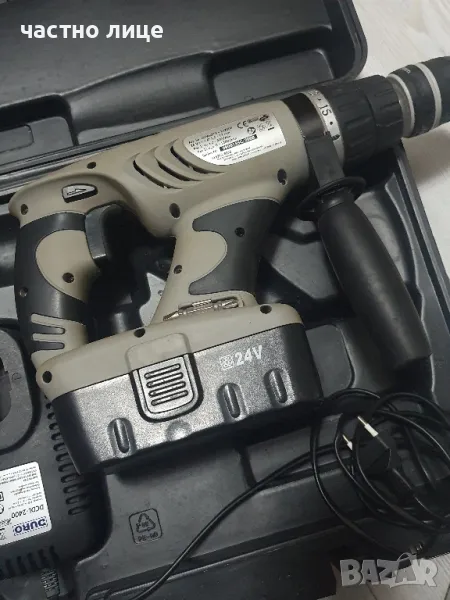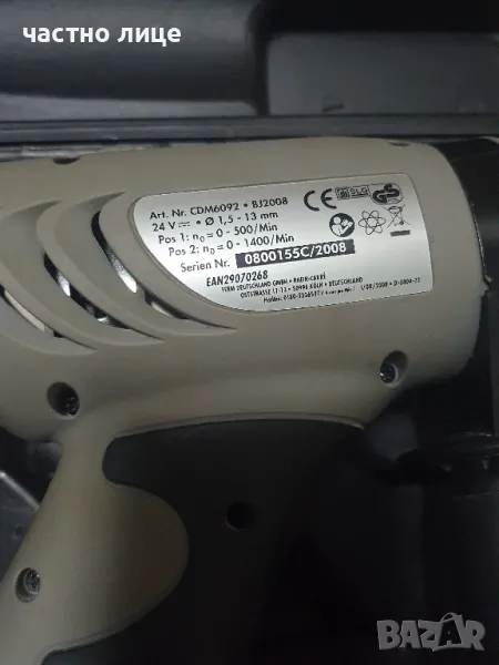 В отлично състояние, 24 волтова батерия и зарядно, до половин час работа на батерията. Двускоростен, 500-1400 оборота, захват на патронника от 1.5-13мм.