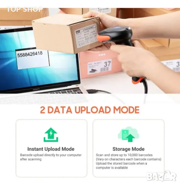 【Четец на баркод --- Plug and Play】 Лесна и бърза инсталация от кутията, включете кабела във вашия компютър, лаптоп, POS или касов апарат и започнете да сканирате. Рентабилен избор за супермаркет, аптека, логистични и книжарници и др. Няма нужда да се учите, започнете бързо