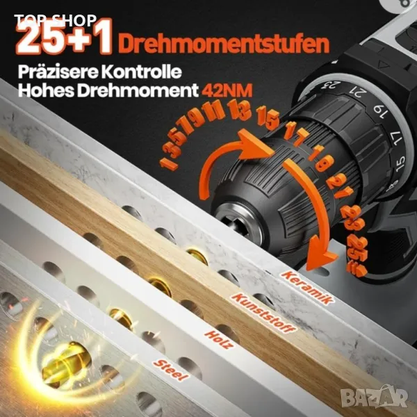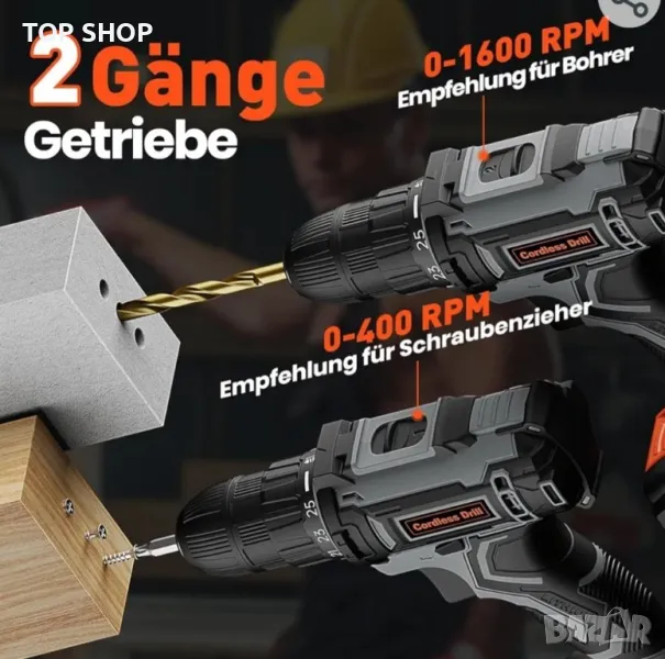 акумулаторен винтоверт: 42 NM въртящ момент, 25 + 1 настройки на въртящия момент, двускоростна трансмисия, ниска скорост (0-400 rpm), висока скорост (0-1600 rpm), можете гъвкаво да го регулирате към действителните нужди; независимо дали е лека работа или работа с висок интензитет. Батериите с голям капацитет са в основата на работата: въпреки че е оборудвана само с една батерия, батерията с голям капацитет от 2000 mAh е достатъчна, за да осигури ежедневната ви употреба; след хиляди тестове за зареждане и разреждане в лабораторията, не е нужно да се притеснявате за качеството на батерията; с 2,0 Ah бързо зарядно устройство може да се зареди напълно за един час✨посоката на въртене на свредлото може гъвкаво да се превключва между по посока на часовниковата стрелка и обратно на часовниковата стрелка; чантата за носене е лека и стабилна и ви предлага преносимо изживяване и защита; висококачествени LED светлини озаряват тъмнината, можете да работите лесно дори на тъмно; ергономично проектираната дръжка подобрява комфорта при захващане и намалява умората. Захващащата лента отзад ефективно предпазва свредлото от изплъзване по време на работа.Мощно портфолио от аксесоари: висококачественият метал най-накрая се превръща в аксесоар за този акумулаторен винтоверт след строг процес; 6 х отвертки, 3 х спирални бормашини, 3 х върхове свредла, 9 х гаечни ключове, 1 х адаптер за гнездо, 1 х държач за шестограмна отвертка, 1 х винт с гъвкав вал, 1 х глава за четка. Патронникът 3/8 инча (10 мм) може свободно да се заменя с аксесоари.