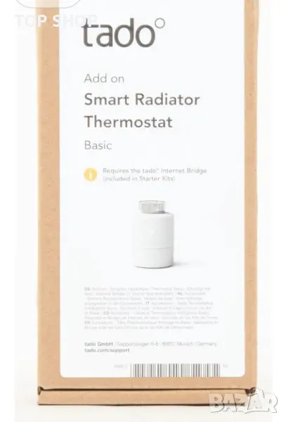 ИЗИСКВАНИЯ: Работи само със стартов комплект tado° (V2, V3, V3+), предлага се отделно - идва с 1 Smart Radiator Thermostat Basic, 6 адаптера за различни марки радиатори и батерии
