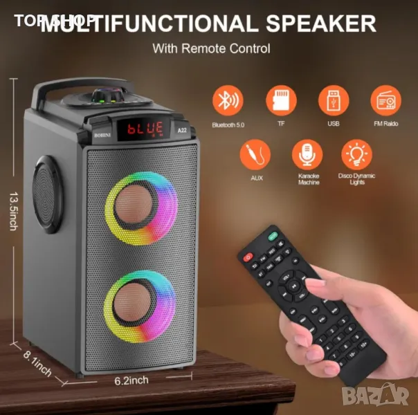 [Bluetooth високоговорители за дома] - Тонколона BOHINI A22 е прекрасен подарък за хора от всички възрасти, независимо дали обичат музиката, купона или просто искат да се наслаждават на музика у дома. Идеален като празничен подарък за рожден ден, Коледа, за вашите деца или приятели. Парти говорителят е подходящ за слушане на музика, гледане на филми, партита и дори пеене на караоке, сватби, блокови събития, конференции и др.