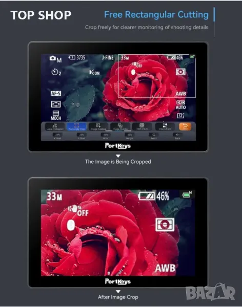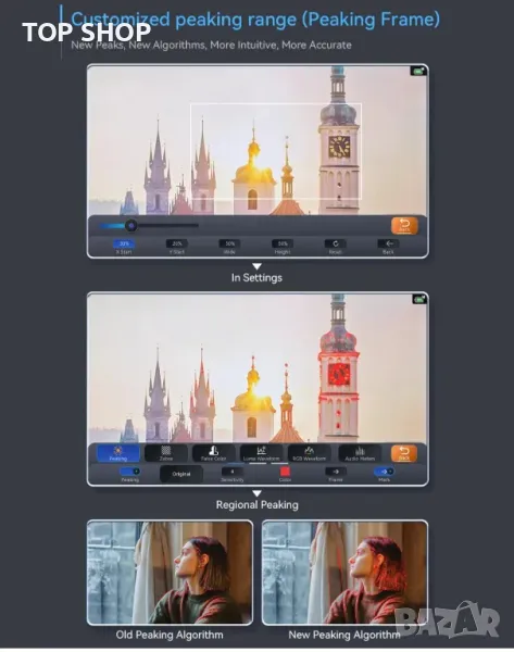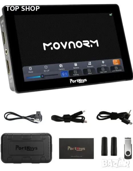 [Разширени функции] Anamorphic, 3D LUT, Zebra, Waveform, Control Field, Grids, Audio Counters, Image Flip, Color Temperature, Spike, Zoom, Cross Hair, Camera Control, Display Flip, False Color, X-rite система за калибриране на цветовете, Фиктивна камера, захранвана от батерии(не са включени в комплекта)