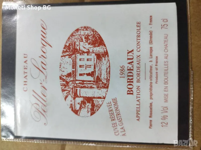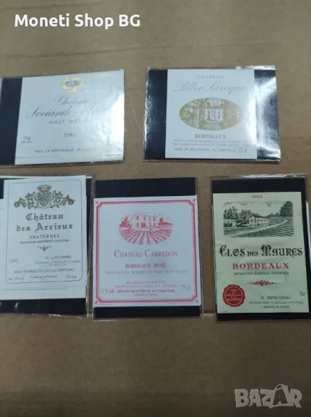 Колекцията се предлага на малки лотове по 10 бройки. Качество и състояние видно от снимките. Събирана е повече от 20 години. Подходяща е както за начинаещи така и за професионални колекционери за да попълнят липсващите марки и години. Подходяща е за пана за къщи, механи и винени заводи. Подходяща са за дизайнерски студиа и агенции, за вдъхновявания на дизайнери като модели и сюджети както и да бъдат използвани за изследване на тененциите на етикети през различните години на винопроизводителите. Молим измамници, които възнамеряват да купят стари бутилки колекционерски вина, които не са били съхранявани правилно и бутилките са с изгнили, мухлясали или паднали етикети да не се свързват с нас. Ние няма да им съдействаме в престъпните намерения. Правим това уточнение, защото вече се свързаха такива лица с нас с идеята да купят етикети от колекцията и да ги залепят на такива етикети вино, които да продадат за оригинали на богати колекционери. Да, ние знаем, че етикета продава! Ние предираме за етично поведение и отношение в колекционерските среди. Цената от 3 лева на брой не се коментира дори и при покупка на 500 - 700 - 1000 екземпляра. Идеята е тези етикети на ниска цена да достигнат до повече колекционери и да донесат повече радост на повече хора.