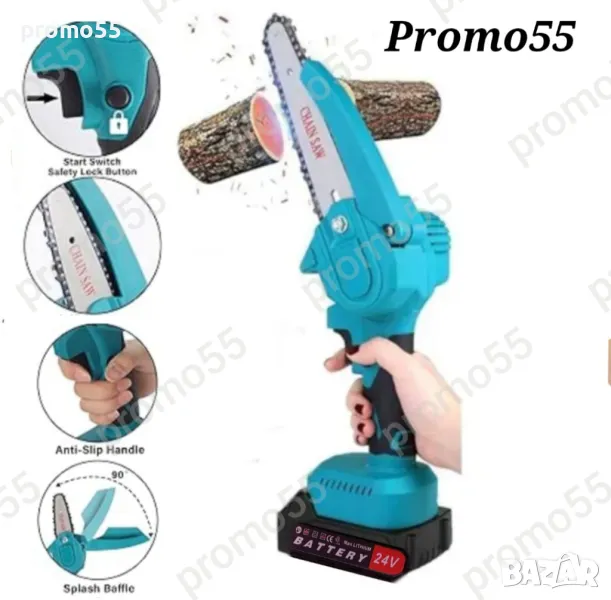 ПРОМОЦИЯ! Акумулаторен Мини Верижен Трион 6 Инча с Две Батерии 24V в куфар