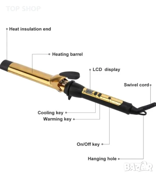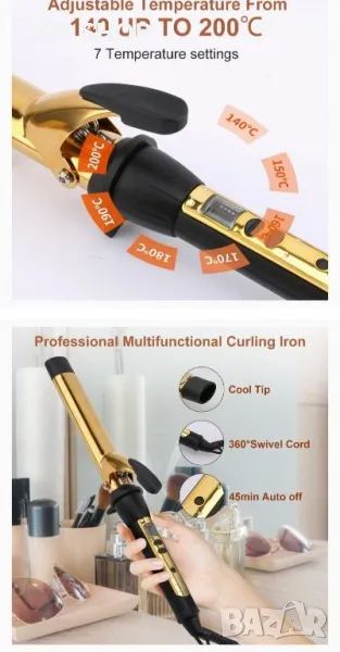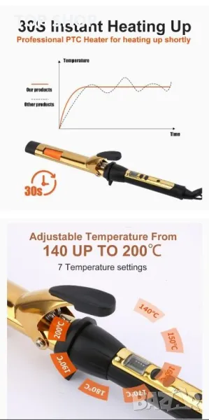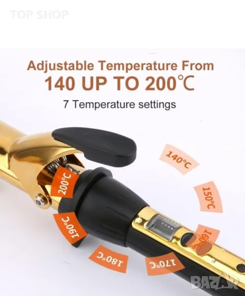 7 температурни настройки (140-200 С ), LCD цифров индикатор, една пръчка за къдрене ви помага лесно да разберете кога е достигната желаната температура. Можете да регулирате температурата според вашия тип коса. Подходящата температура може да ви помогне да защитите косата си и да направите по-добри къдрави прически.