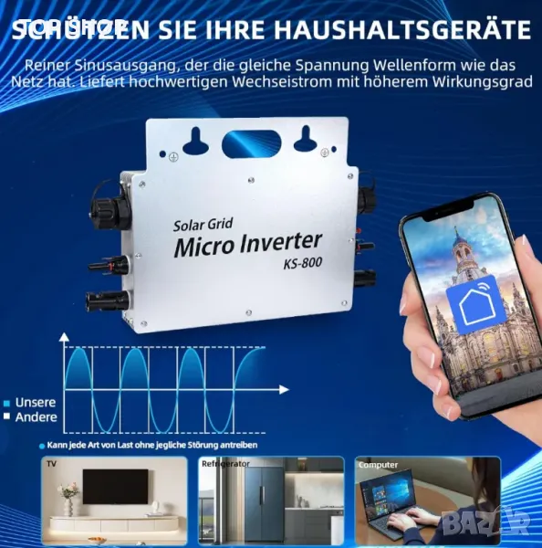 Инвертор 800 W - Инвертор IP65 с WLAN приложение за 2 соларни модула