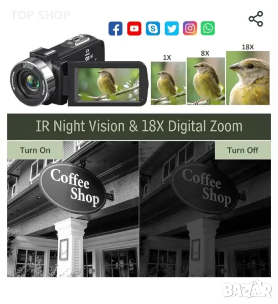 4K видеокамера 48MP 30FPS с IR нощно виждане 18X цифрово увеличение, снимка 1 - Камери - 48934583 4K видеокамера 48MP 30FPS с IR нощно виждане 18X цифрово увеличение, снимка 2 - Камери - 48934583 4K видеокамера 48MP 30FPS с IR нощно виждане 18X цифрово увеличение, снимка 3 - Камери - 48934583 4K видеокамера 48MP 30FPS с IR нощно виждане 18X цифрово увеличение, снимка 4 - Камери - 48934583 4K видеокамера 48MP 30FPS с IR нощно виждане 18X цифрово увеличение, снимка 5 - Камери - 48934583 4K видеокамера 48MP 30FPS с IR нощно виждане 18X цифрово увеличение, снимка 6 - Камери - 48934583 4K видеокамера 48MP 30FPS с IR нощно виждане 18X цифрово увеличение, снимка 7 - Камери - 48934583 4K видеокамера 48MP 30FPS с IR нощно виждане 18X цифрово увеличение, снимка 8 - Камери - 48934583 4K видеокамера 48MP 30FPS с IR нощно виждане 18X цифрово увеличение, снимка 9 - Камери - 48934583 4K видеокамера 48MP 30FPS с IR нощно виждане 18X цифрово увеличение, снимка 10 - Камери - 48934583 1/10