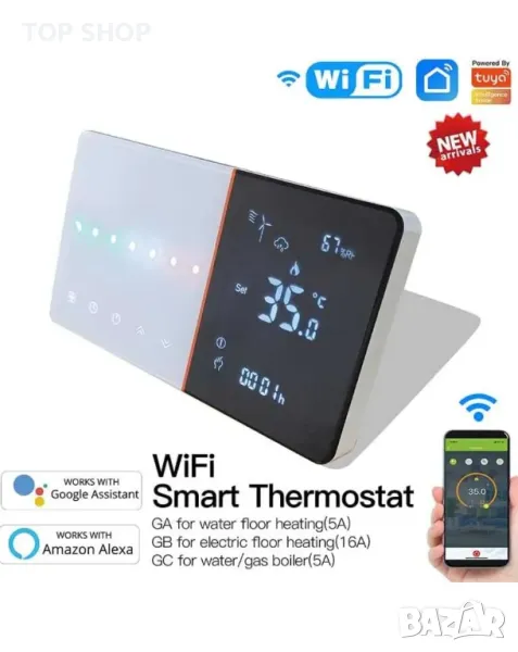 Програмируем, интелигентен и многофункционален термостат с Wi-Fi приложения (TUYA и Smart Life), LCD сензорен екран.